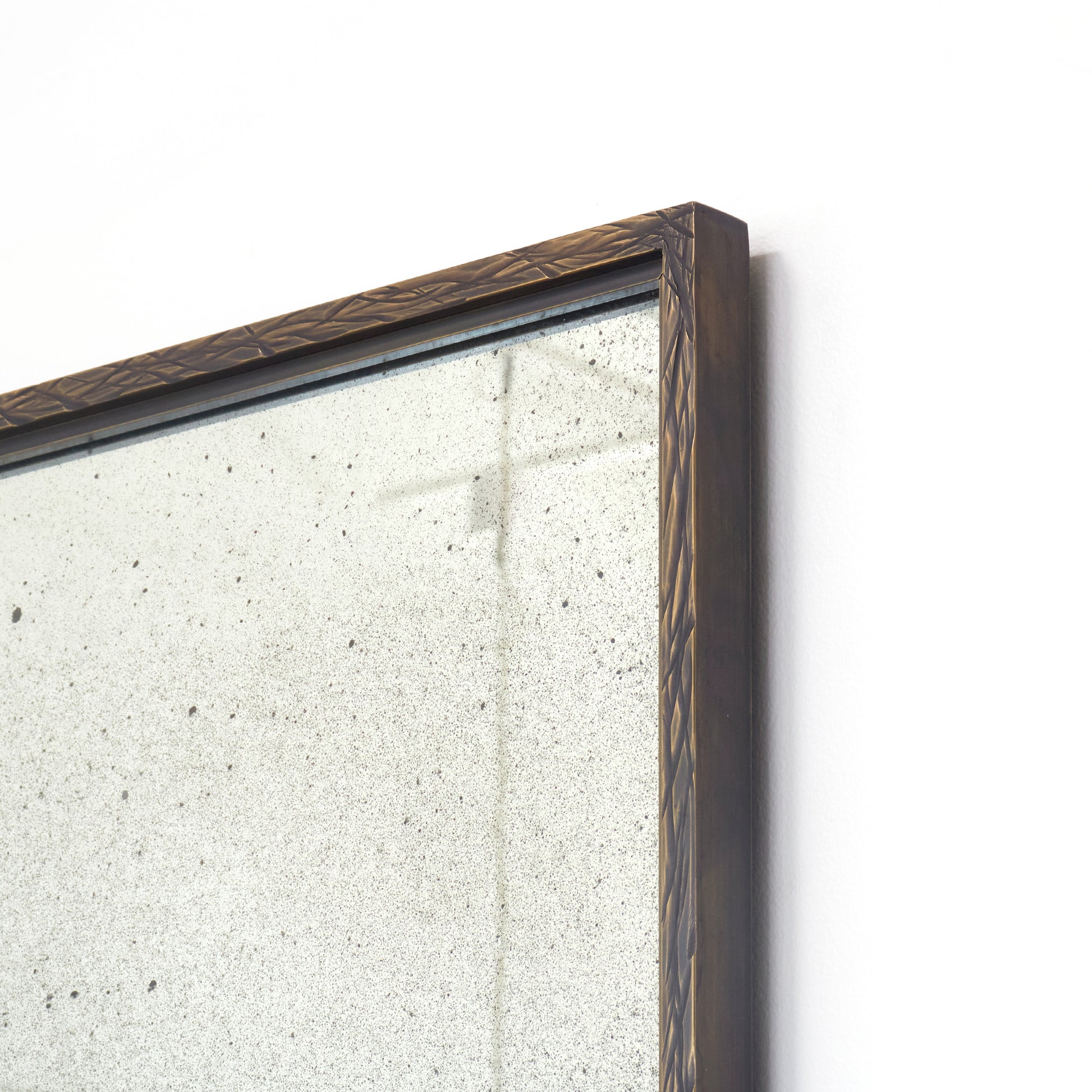 The Lineage Mirror begins with solid brass, shaped and hand-scored by artisans to create a signature linear texture. The etched pattern catches light in delicate ways, framing the antiqued mirror with understated elegance. A recessed interior border introduces architectural depth and proportion. Available in custom sizes and regular or antique mirror, it’s a refined detail that elevates any space.